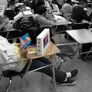 I observed a really innovative Denver teacher who took advantage of the school’s recent purchase of several laptops. She used the boxes the laptops came in as mini individual libraries. Each student simply grabs a box on his way into class and has several books to choose from!